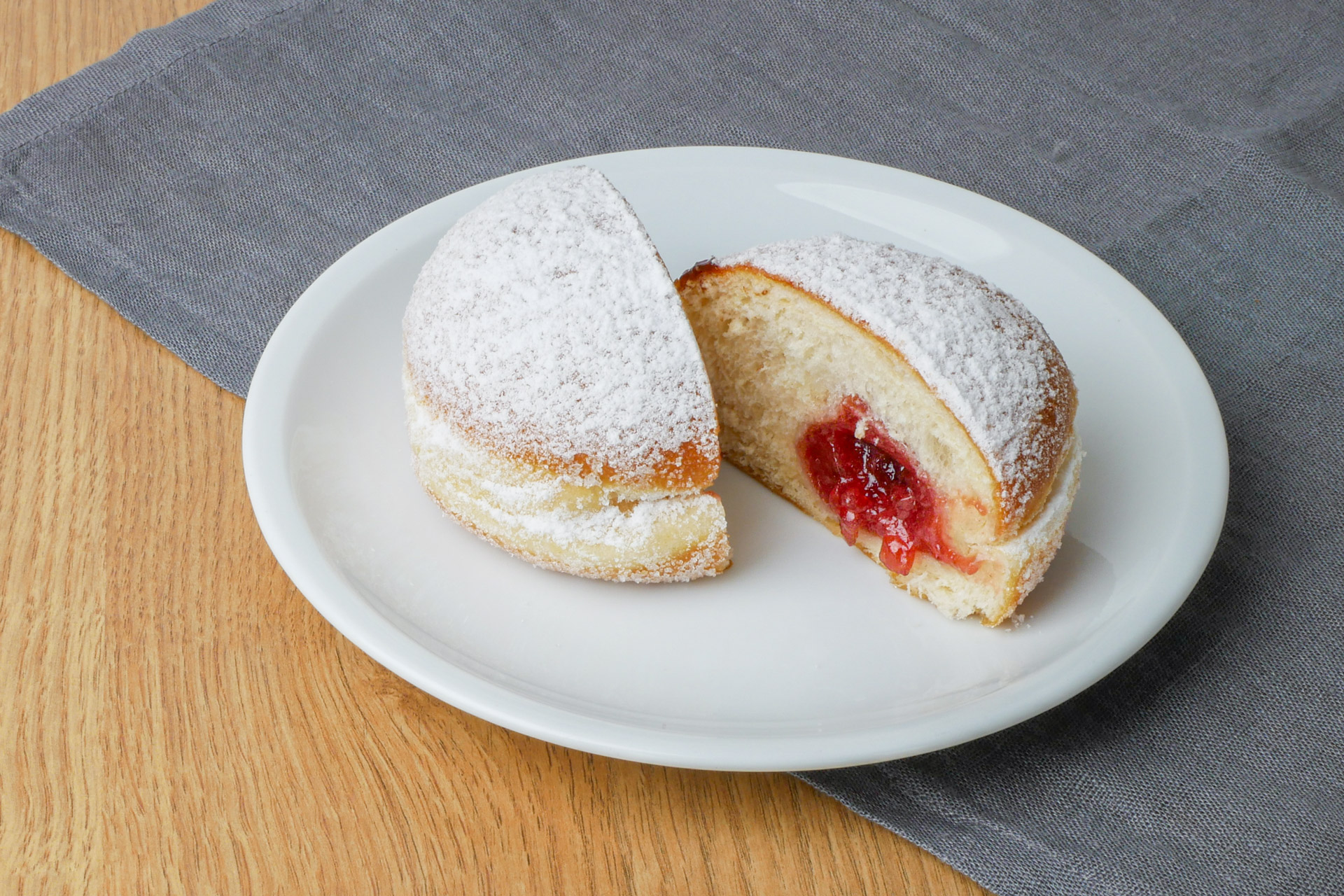 Siedegebäck aus süßem Hefeteig gefüllt mit Marmelade